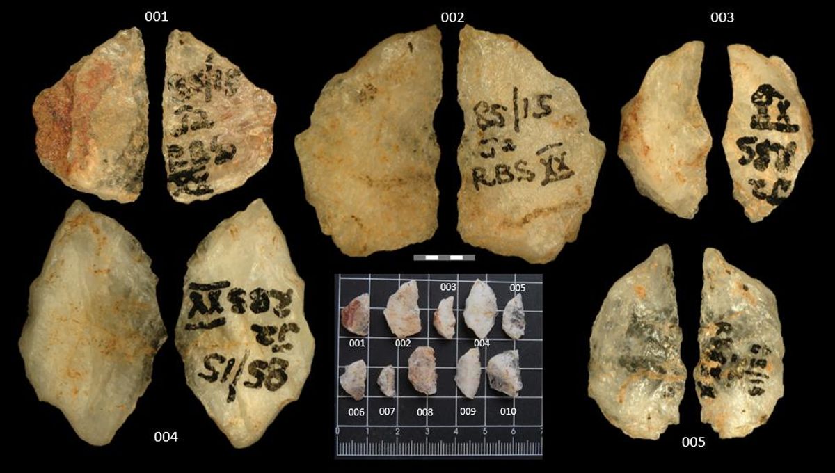 The quartz arrowheads were found at the Umhlatuzana Rock Shelter in KwaZulu-Natal province, South Africa.